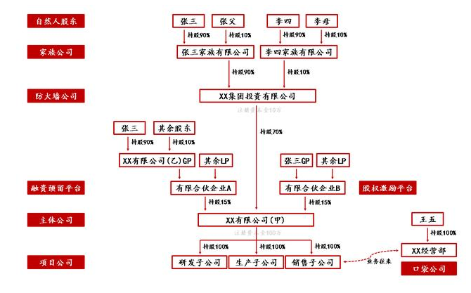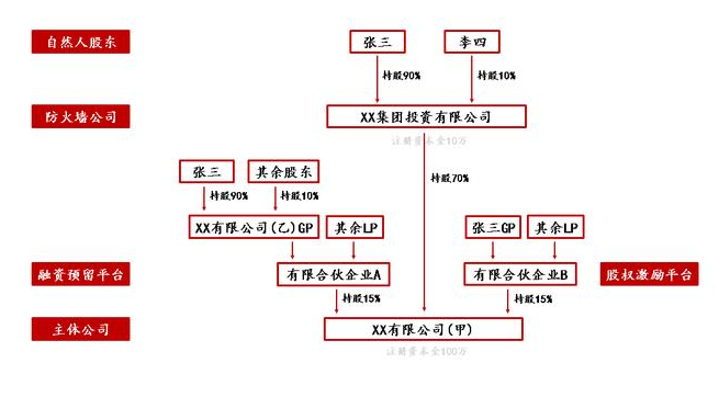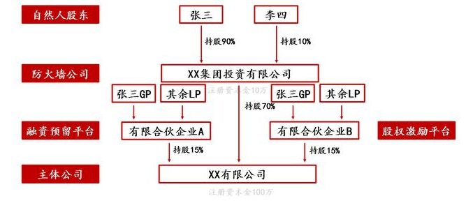 有(yǒu)限合夥企業的(de)作用有(yǒu)三個:第一(yī),可(kě)以加強創始人——也就是普通合夥人GP對企業的(de)控制力;第二,可(kě)以為(wèi)主體公司中的(de)優秀骨幹人員提供股權激勵的(de)可(kě)能性;第三,可(kě)以為(wèi)主體公司未來融資預留空間。具體股權架構修正如(rú)下: